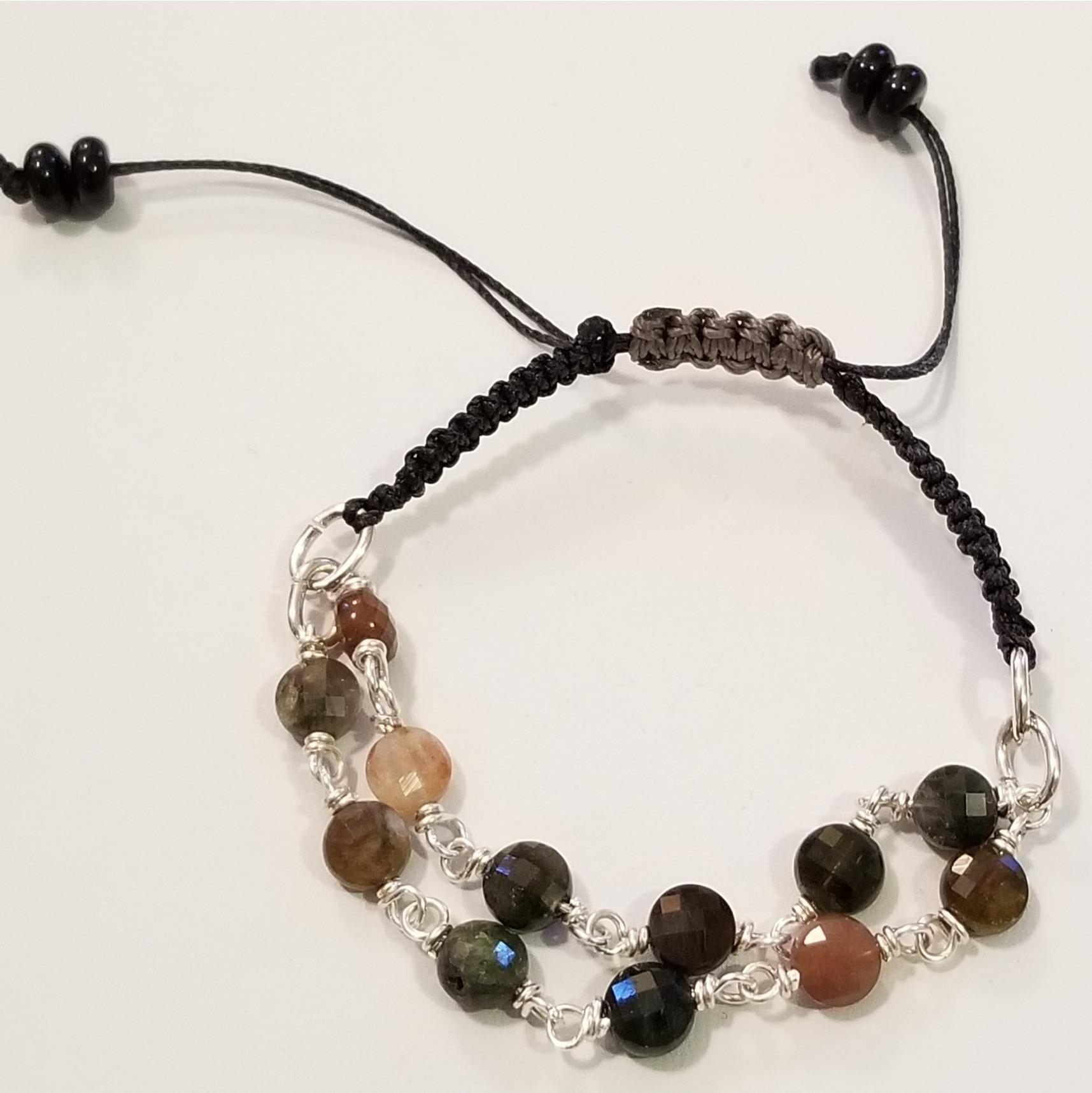 Fits 6" to 7.5" tourmaline with sterling silver wire wrapped. Meaning of Tourmaline- compassion, understanding and balance. This bracelet is adjustable clasp- has an elegant faceted grade, attached organic flair. Handmade by Ann Tristan